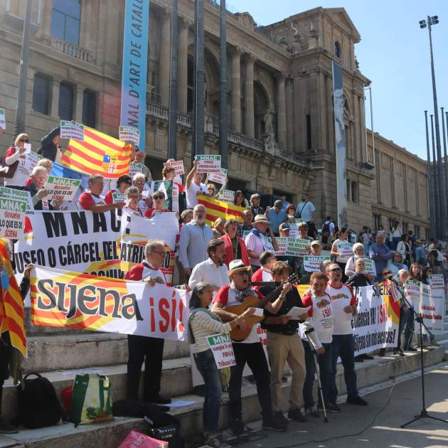 Una cinquantena de persones s’han concentrat aquest dissabte al migdia a les portes del Museu Nacional d’Art de Catalunya (MNAC) per reclamar que es compleixi la sentència que ordena retornar les pintures murals del monestir de Santa Maria de Sixena, a l’Aragó. La convocatòria ha estat impulsada per la plataforma 'Sijena Sí', que defensa que les obres haurien de tornar al seu emplaçament original. Durant la protesta s’ha desplegat una pancarta en què s’acusava el museu barceloní de ser una “presó del patrimoni”.