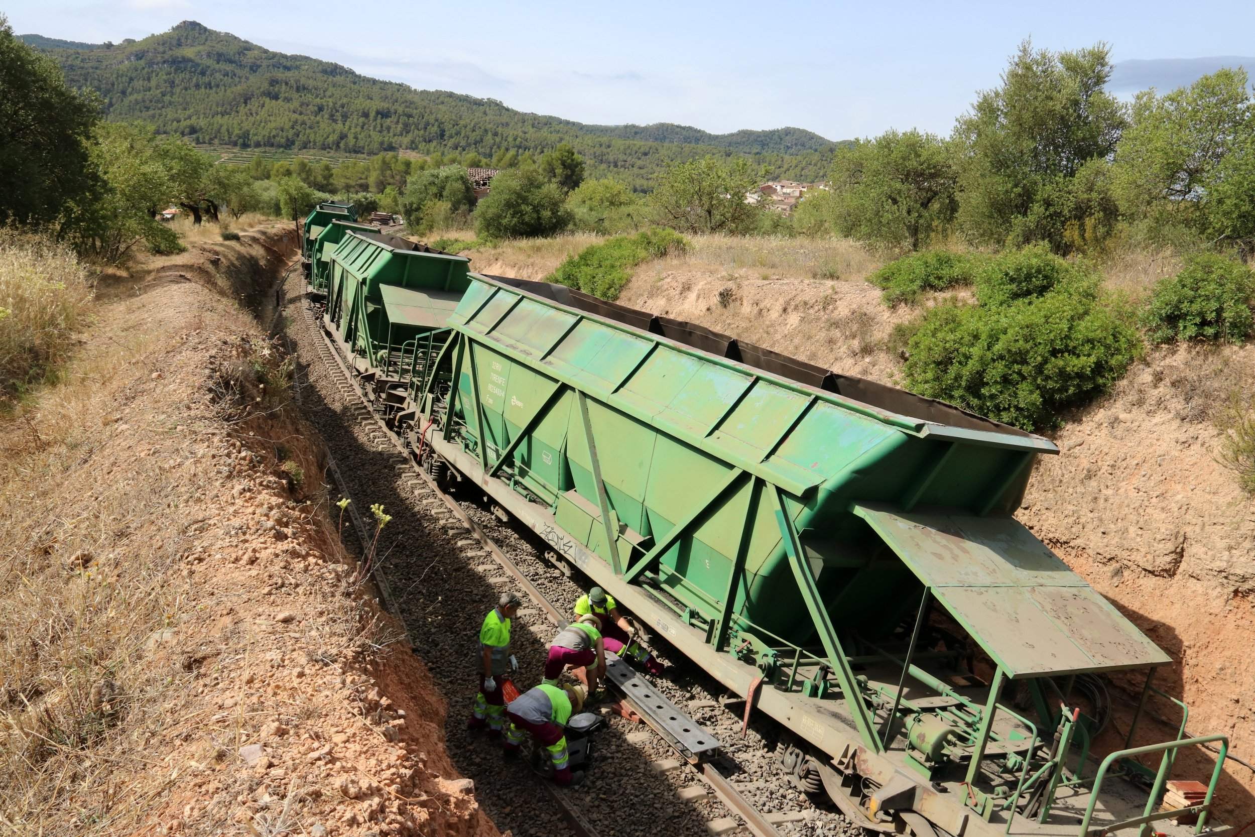 Els operaris d'Adif i Renfe han finalitzat els treballs d'encarrilament i retirada dels vagons i de reparació dels danys a les vies i a la catenària. Concretament, sis vagons del tren van sortir de la via. Les tasques dels operaris s'han complicat ja que una part important d'aquestes s'han hagut de realitzar a l'interior d'un túnel. Prop de 30 tècnics d’Adif i Renfe han treballat simultàniament en aquestes tasques.