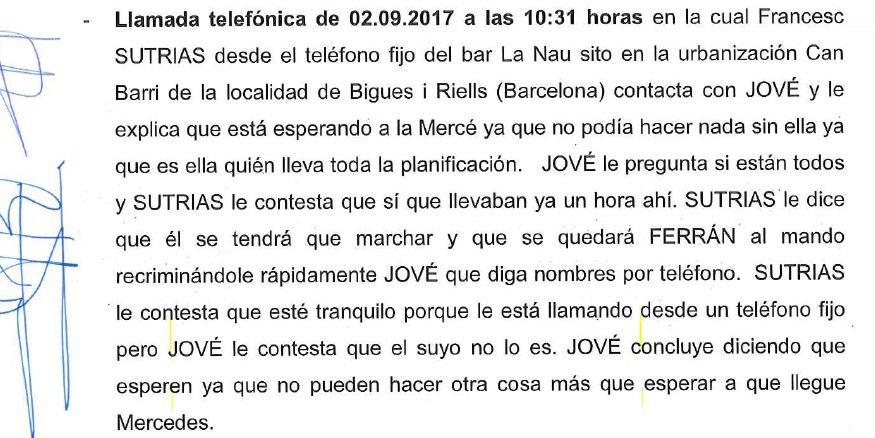 De fet, un cop ja ha passat el referèndum, el 5 d'octubre, la policia demana autorització al jutge perquè dos agents, fent-se càrrec de la custòdia de les proves, portin el mòbil fins a Alemanya, a l'empresa Cellebriti, per poder aconseguir descodificar la informació que hi ha dins l'Iphone 6 de Josep Maria Jové. El jutge ho autoritza l'endemà mateix.