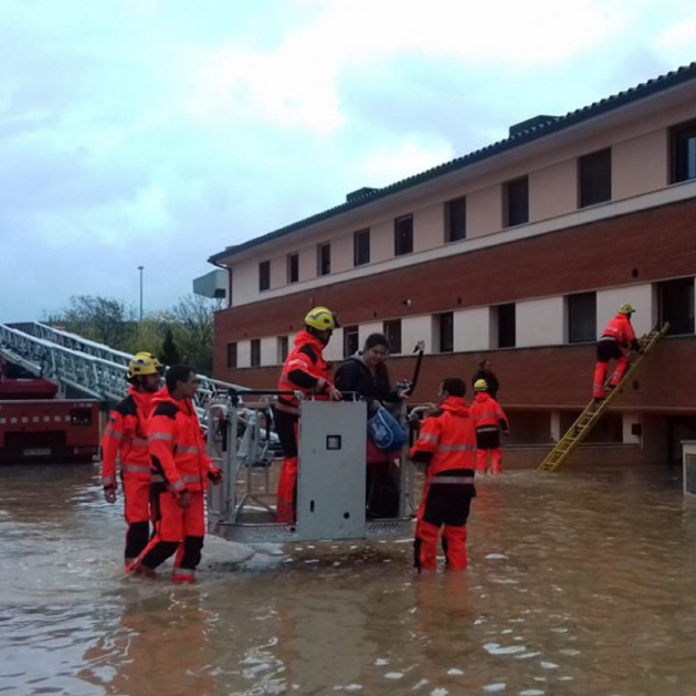 Hem evacuat amb l'ajuda de l'autoescala #bomberscat 21 persones dels habitatges situats al costat de l'Estadi Municipal (C/Mossèn Miquel Ayats) de Vilatenim per inundacions. pic.twitter.com/6TwsWge1Ik