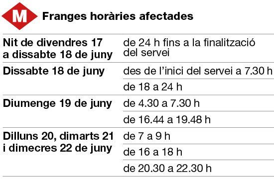 Vidal no entén que la Generalitat no hagi tingut en compte l'informe tècnic de TMB i ha advertit els ciutadans que utilitzin mitjans de transport alternatius perquè molt possiblement “hauran de tancar estacions” per problemes de seguretat. Les franges horàries afectades per la vaga de metro seran les següents: