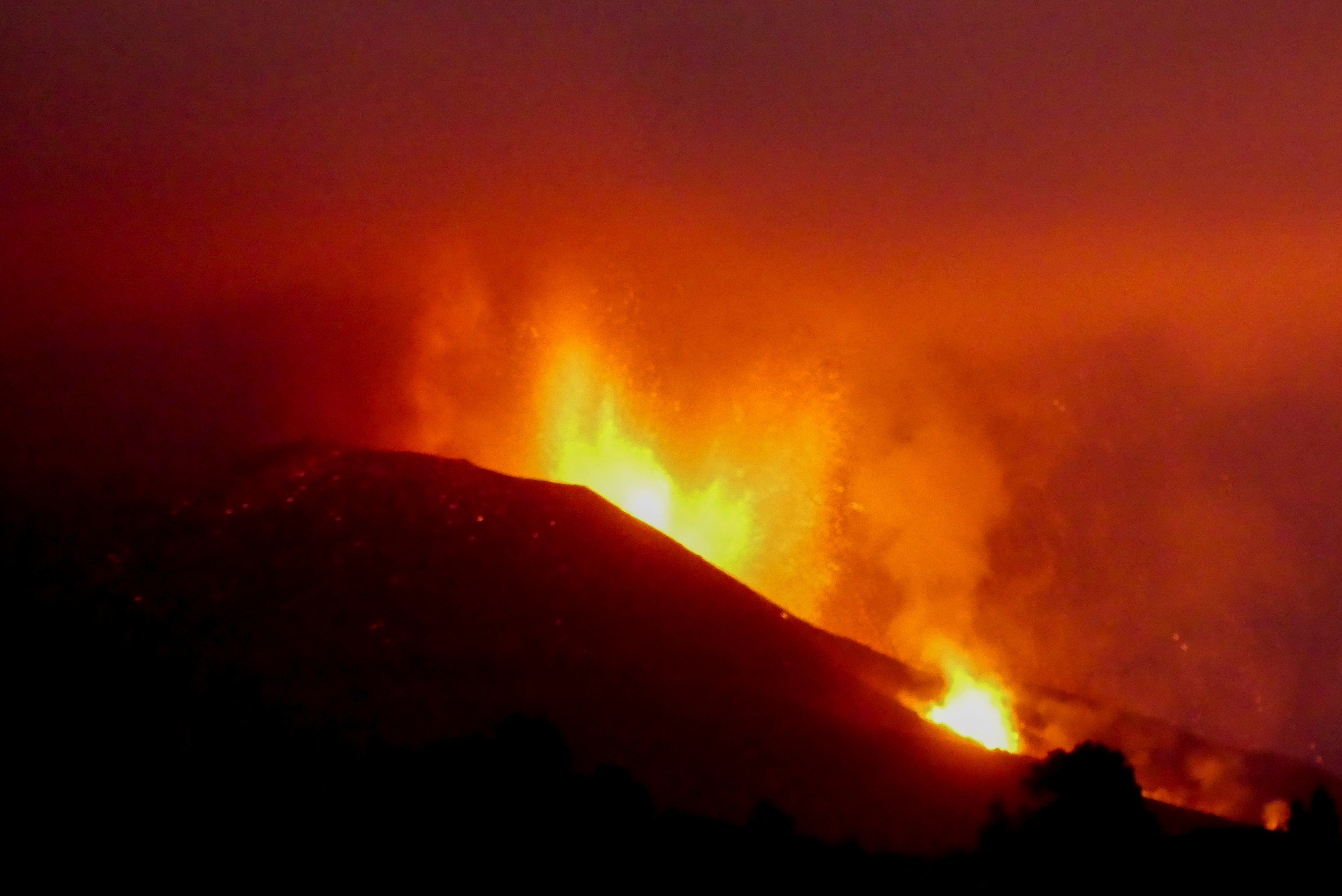 El volcà de La Palma ha intensificat la seva activitat des de divendres, amb un alentiment a la nit i una recuperació d'emissions aquest dissabte, amb l'aparició de noves boques al llarg de la fissura i la ruptura parcial de l'edifici del con, si bé és una evolució típica en les erupcions estrombolianes com les que es donen a les Canàries, segons els experts.