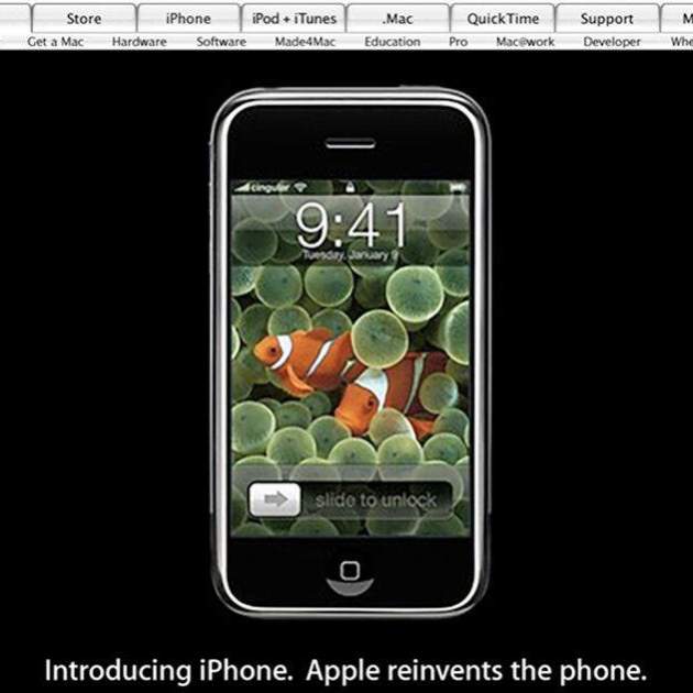 El primer iPhone i el que va canviar les regles del joc, a partir d'aquell moment els telèfons intel·ligents no van tornar a ser iguals. Un dels millors moments de la presentació que la vaig celebrar broma telefònica de Steve Jobs. Apple també publicitada en la seva web els famosos anuncis Mac vs PC i el primer Apple TV.