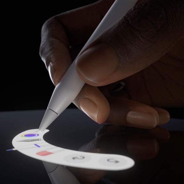 Apple ha creat la il·lusió d'una ombra quan l'Apple Pencil Pro s'acosta a la pantalla de l'iPad Pro, de manera que visualment puguis veure on escriuràs d'una manera molt precisa, simulant que estàs escrivint sobre un paper.