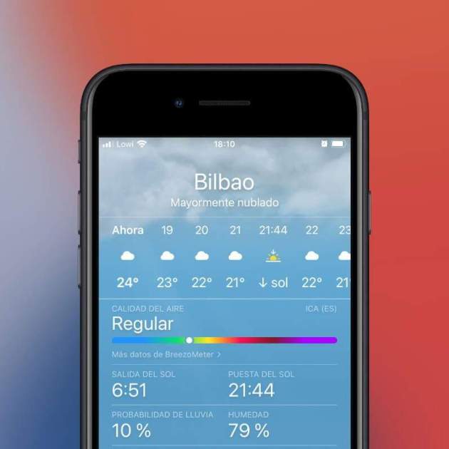 Si obres l'aplicació del temps al teu iPhone o iPod touch, podràs consultar a la part inferior la qualitat de l'aire segons estudis independents, col·locant-se en una barra de diferents colors en funció de l'estat en el moment de la consulta. D'aquesta manera, només has d'agregar la ciutat per a la qual vulguis consultar la qualitat de l'aire, i desplaçant-te podràs fàcilment conèixer aquesta dada en temps real.