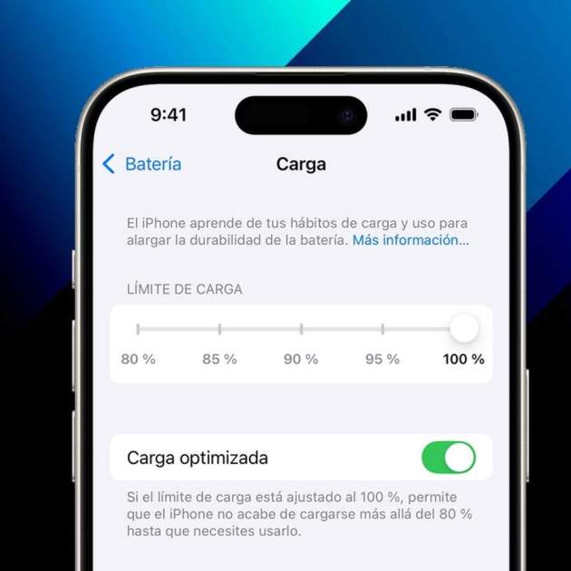 Ara és possible configurar un 80%, com estava prèviament, a un 85%, 90%, 95% i fins al 100%. Només has de tenir en compte quantes hores de mitjana utilitzes l'iPhone. Si tens accés a un adaptador de corrent durant el dia per connectar el teu iPhone, un límit del 80% al 85% és acceptable. Si passes la major part del temps en mobilitat i requereixes més bateria, entre el 90% i el 95% és la millor decisió.