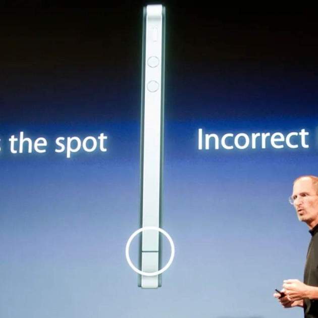 Steve Jobs va indicar en el seu moment que els usuaris agafaven l'iPhone 4 de manera incorrecta, cosa que no va resultar ser certa. Apple va llançar una funda nova per intentar suavitzar l'assumpte, cosa que no va ajudar en res ja que van haver de fer front a una demanda. Després van declarar que es van equivocar en la fórmula de mostra pel que fa a les barres gràfiques d'intensitat del senyal.
