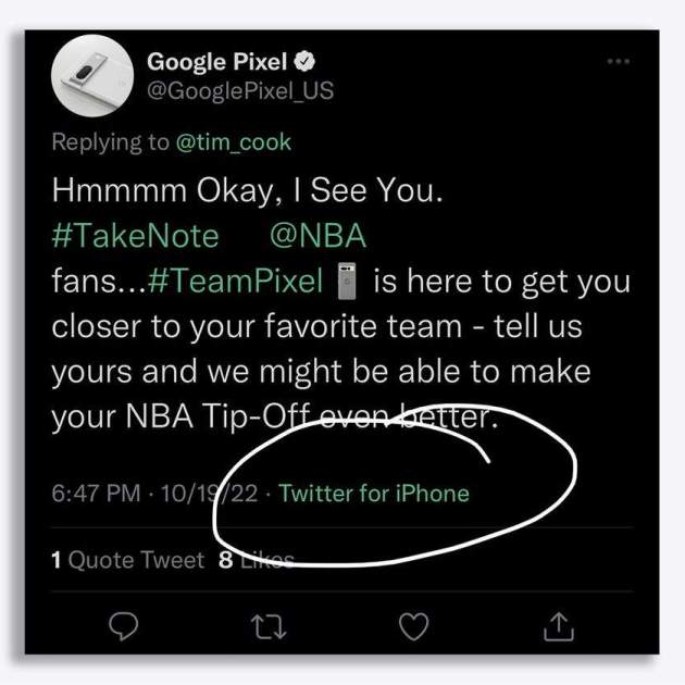 El compte oficial de Google Pixel ha piulat des d'un iPhone