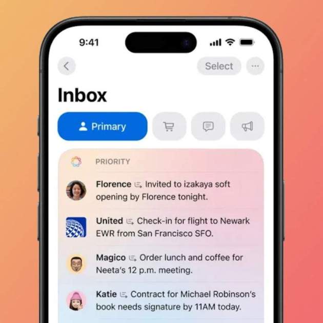 A més, el redisseny de Mail permet saber d'una manera molt més fàcil qui t'ha enviat un correu electrònic incloent la imatge de perfil de cada contacte al lateral esquerre de la interfície d'usuari. Addicionalment, la intel·ligència artificial d'Apple Intelligence s'encarrega de prioritzar els correus electrònics més importants per mostrar-los a l'àrea superior i de crear resums dels seus continguts.