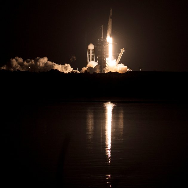 Un coet Falcon 9 que transporta la càpsula Dragon amb quatre astronautes en el l seu interior s'ha enlairat amb èxit aquest diumenge rumb a l'Estació Espacial Internacional (EEI) des del Centre Espacial Kennedy, a Florida (EUA), i a l'hora prevista (0,27 GMT de dilluns), una fita per a la NASA i la companyia privada Spacex de cara a les seves futures missions espacials.
