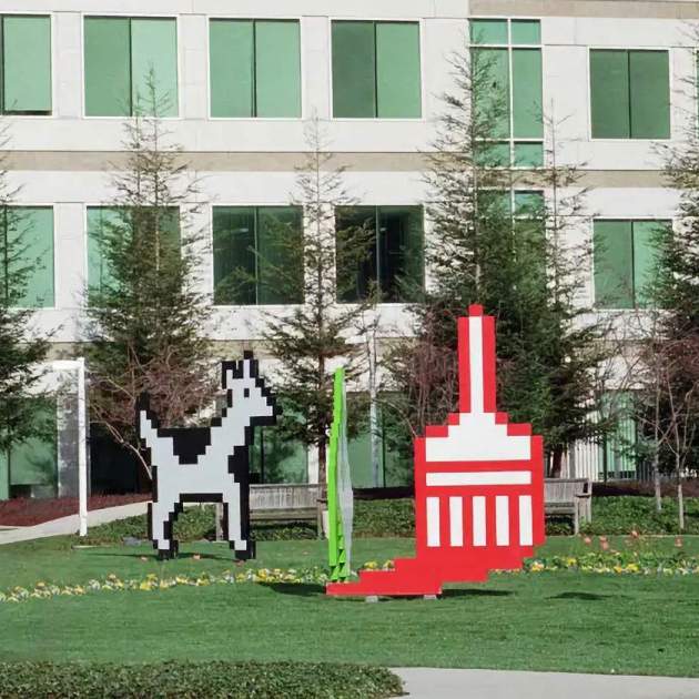 Pocs ho saben però durant un període d'uns 5 anys Apple va tenir davant del seu campus d'R+D a la seva seu de Cupertino 8 estàtues pixelades de gran mida de diversos icones clàssics que es feien servir als Mac de l'època. Aquest petit jardí era un lloc força secret i amagat que, de la nit al dia, va desaparèixer per sempre.