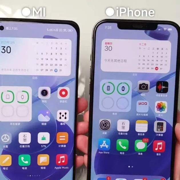 Pantalla d'inici de MIUI 13 i d'iOS 15