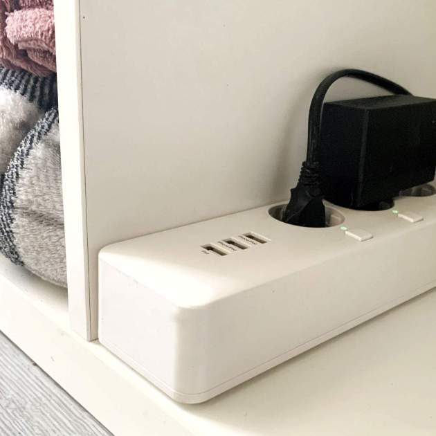 Tinc la tauleta de nit a mà esquerra, just a sota de la tauleta tinc una regleta intel·ligent amb tres endolls que puc activar o desactivar de forma independent en el moment que jo desitgi i amb la veu, des de la pantalla del mòbil o fins i tot a una hora determinada configurant les automatitzacions de Casa amb HomeKit. Però no et preocupis, el procés és súper senzill. Amb aquesta regleta podràs, per exemple, encendre la llum de la teva tauleta de nit, demanant-ho a Siri, a través d'una drecera o a la mateixa aplicació Casa. Extrapola això a una estufa, una làmpada de lava, el que tu vulguis en un instant. De res. Seguim.