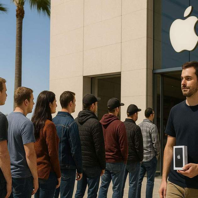 Fila de compradors a l'Apple Store / Imatge generada amb intel·ligència artificial