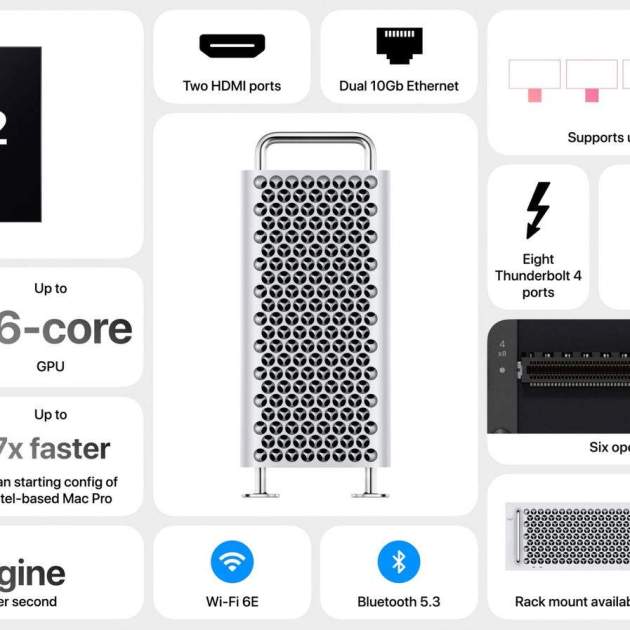 El Mac Pro amb M2 ha estat l'últim ordinador a rebre els processadors d'Apple. Tot i que la versió d'aquest 2023 té un disseny molt similar al Mac Pro amb xip Intel del 2019, en aquesta ocasió el seu rendiment s'ha optimitzat en gran manera, convertint-se en l'equip Mac més potent i versàtil de la història i la versió més cara del qual és molt més barata que el model més car de l'anterior.