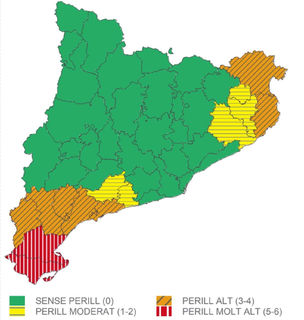 Aquest dimecres arriben els aiguats més forts i perillosos a Catalunya. El perill de pluges torrencials és molt alt al Montsià i al Baix Ebre, alt a la Terra Alta, Ribera d'Ebre, Priorat, Baix Camp i Tarragonès, i moderat a l'Alt Camp i el Baix Penedès. Al sud de Catalunya les pluges i tempestes cauran durant tot el vespre amb risc d'inundacions. D'altra banda, durant les immediates hores, també estan en alerta l'Alt i el Baix Empordà per perill molt alt de precipitacions que poden deixar més de 40 litres per metre quadrat en només mitja hora. El perill és moderat al Pla de l'Estany, Gironès i la Selva. A les comarques de Girona, però, les precipitacions desapareixeran a partir de mitja tarda o cap al tard mentre continuarà plovent fort al sud del país. Una tongada de pluges més dèbils arribarà a la Catalunya Central i a les comarques del Pla de Lleida entre el migdia d'aquest dimecres i primera hora de la tarda. Després, desapareixeran les precipitacions a l'interior. Al Pirineu és notícia la primera nevada de la temporada. Alerta, també, pel temporal marítim que tenim a tota la costa catalana amb onades superiors als dos metres i mig o tres metres d'alçària. Ambient força fred.