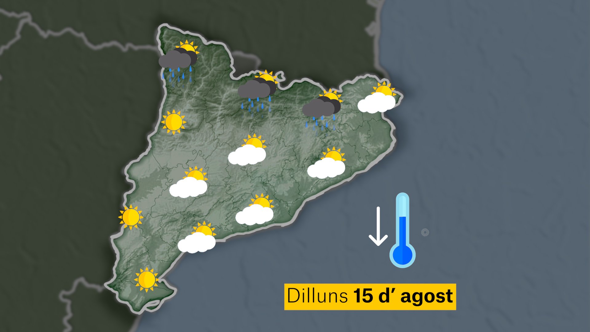 Diumenge, continuarà fent calor, tot i que els termòmetres començaran a baixar. Per fi, la sensació serà més agraïda el festiu 15 d'agost: al centre de Catalunya no passaran dels 34 ºC, mentre que a la costa els termòmetres es mantindran entre els 27 i els 29ºC. Encara dins del període de canícula, continuarà fent calor, però tot sembla indicar que les condicions per poder sortir a fer una escapada a l'aire lliure seran molt millors dilluns que durant el cap de setmana.