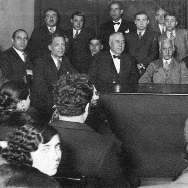 Francesc Macià, right, at the trial in Paris in 1927