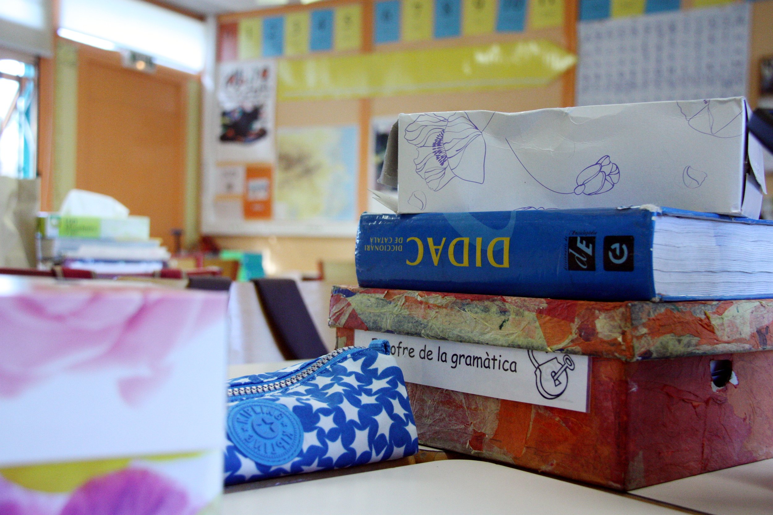 Main image: Catalan school books in a classroom / ACN