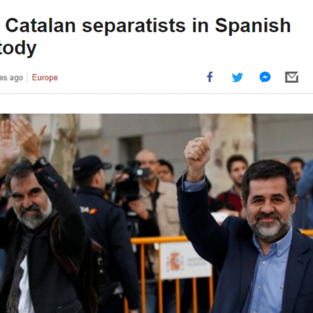Al Jazeera also had a report from Barcelona, discussing the imprisonment of Sànchez and Cuixart in a piece which also covered the day's other big story from Catalonia, the response from Catalan president Puigdemont to prime minister Rajoy.