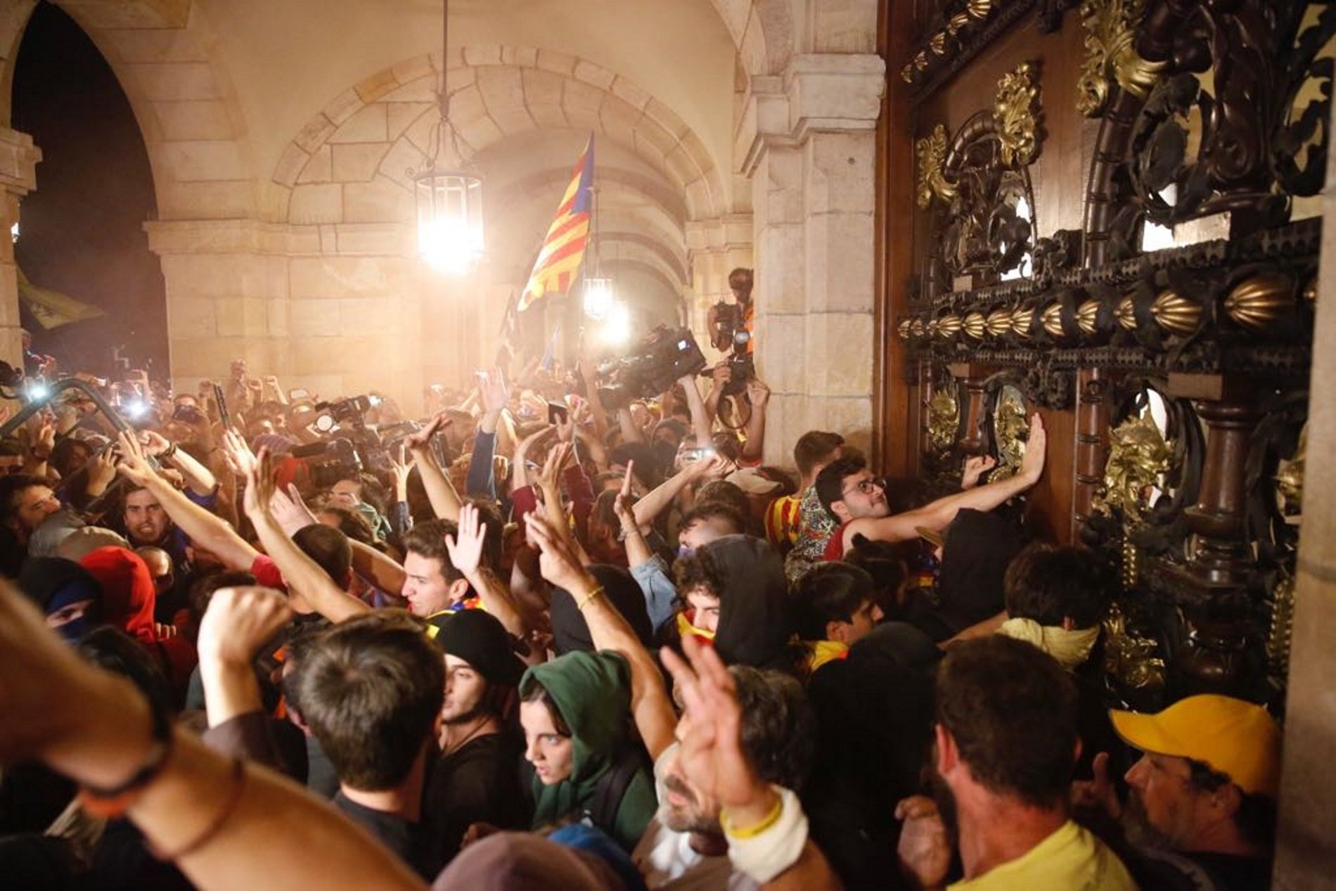 The Mossos d'Esquadra, the Catalan police, had deployed large numbers of officers to supervise the rally, and some tense scenes had been seen. Around 10pm local time, however, demonstrators had reached right up to the doors of the building. Some officers closed themselves inside, others retreated. Minutes later, however, officers were back, with vans in support, dispersing protesters and clearing the way for their colleagues inside to leave.