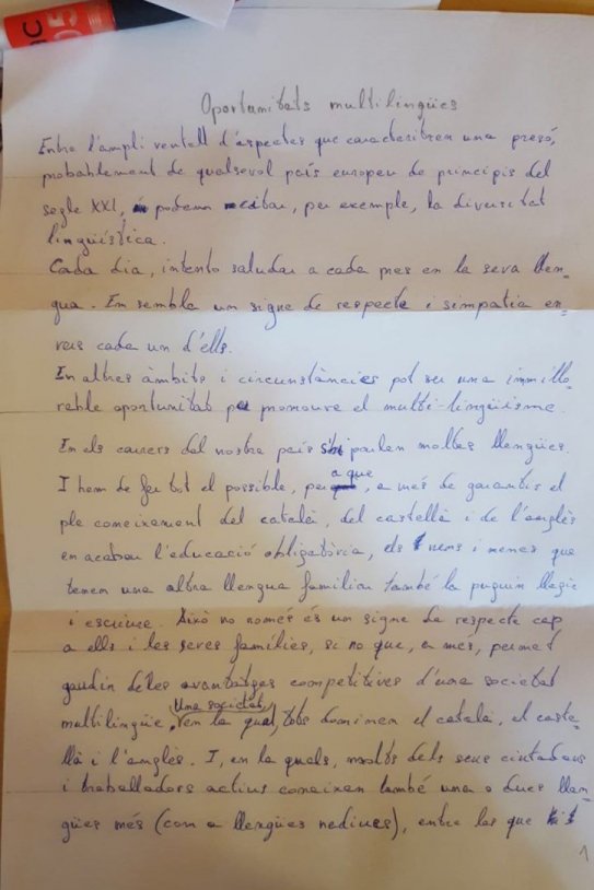 And we have to do everything possible so that, as well as guaranteeing full knowledge of Catalan, Spanish and English by the end of compulsory education, children who have another family language can also read and write that one. This isn't just a sign of respect towards them and their families, but also, moreover, allows us to enjoy the competitive advantages of a multilingual society. A society in which we can all speak Catalan, Spanish and English. And in which many citizens or active workers also know one or two other languages (as native speakers), among which are some as spoken as Mandarin Chinese, Arabic, Urdu and European languages like Italian, French, German, Polish, Romanian, etc.