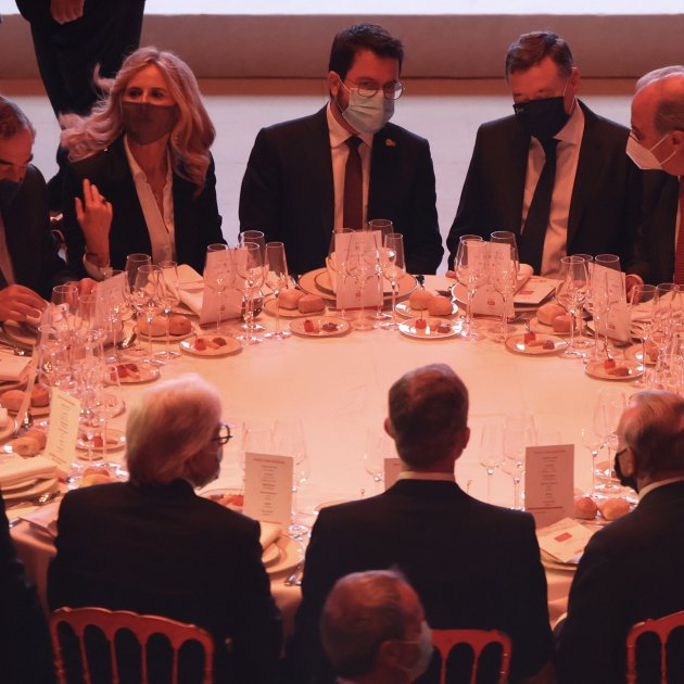 Institutional coldness dominated the event. As usual, the Catalan president avoided the formal greeting ceremony with which the monarch was received in the MNAC building in Barcelona where the awards ceremony was held. The mayor of the city, Ada Colau, also went directly to the dinner table and avoided the family photo. Both entered through the authorities' entrance and, after skipping the official reception, greeted the king, touching clenched fists in a Covid greeting, as the Spanish head of state was heading to the Oval Room where the dinner was held.