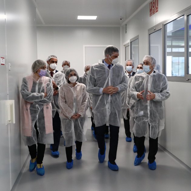 Upon his arrival by car, as part a long motorcade, Sánchez visited the factory installations, posed for a group photo, and gave a speech in which he expressed gratitude for the commitment of the company and of Catalan and Spanish industry "to its compatriots" in the toughest moments of the pandemic, through the manufacture of PCR tests as well as respirators using 3-D technology.