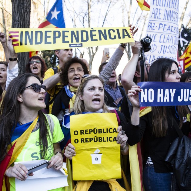 The US press agency speaks of "tens of thousands of protesters" in Madrid and links the march both to the objective of Catalan independence and protests against "the trial of a dozen separatist leaders."
