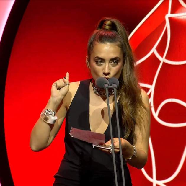 "Les dones de la teva vida et sanaran i et repararan. I algun dia podràs executar a través del cinema una venjança poètica i respectuosa. No tens res del que avergonyir-te. La vergonya està canviant de banda. Una de cada quatre dones ha patit violència sexual. Aquest premi el dedico a totes les víctimes. Aquesta nit som 1.800 persones. Crec que hem de fer números. Aquest premi li dedico a totes les víctimes de violència sexual":