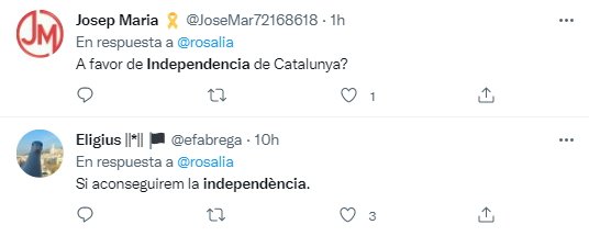 La pregunta que es va quedar sense respondre és "Independència, sí o no?" És difícil pensar que no va veure els missatges. Per tant entenem que no va voler ficar-se en jardins. No hi va haver manera. Silenci. Potser la propera vegada... o no. Alguns ja ho havien intentat abans, sense èxit: "Vivo para la música y mi opinión no tiene más importancia que la de cualquier otro" .