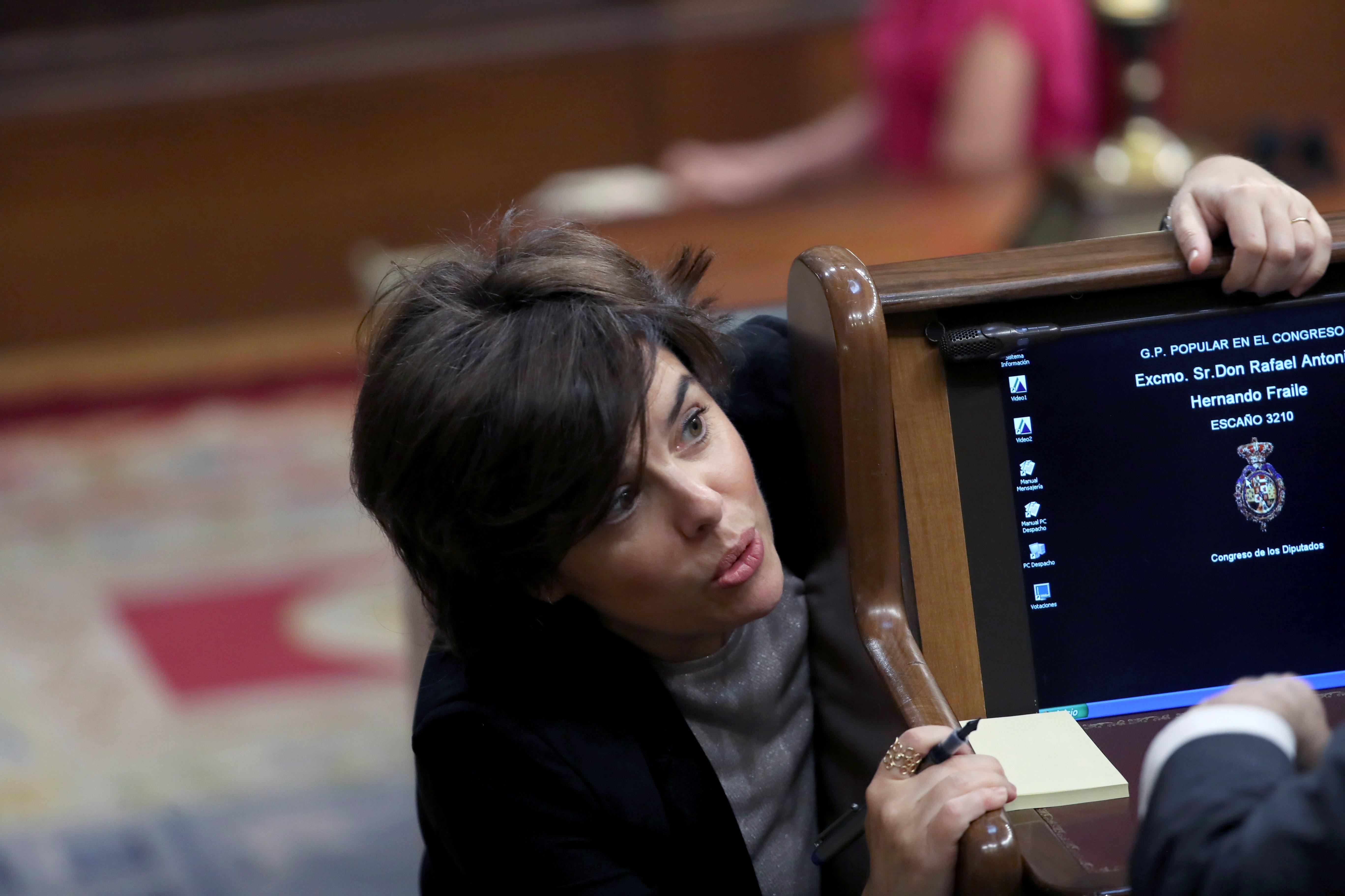 El dia més històric de la democràcia parlamentària a Espanya passarà a la posteritat per una bossa de mà. El bolso de Soraya que va desar a l'escó buit del president del govern que es va negar a contemplar com l'oposició destrossava la seva obra i va preferir tancar-se al restaurant Arahy (que irònicament significa Canvi). Va beure's dues ampolles de whisky per regar un menú que segons revela Ana Rosa costa 30 €. Aquest és el vídeo on el reporter entra als fogons: