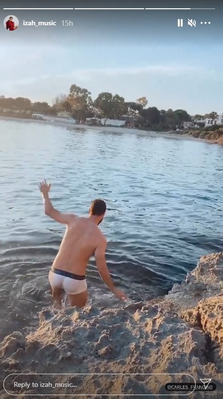 Una visita fins al seu poble amb la que Carles també ha aprofitat per donar el tret de sortida a l'època estival. Ho ha fet gaudint del seu primer bany. Un moment que ha gravat la seva dona i ell ha compartit a les seves xarxes. Lluint roba interior blanca i presumint de la seva espectacular anatomia, l'intèrpret ha combatut les altes temperatures amb un capbussó. Fotos del moment: