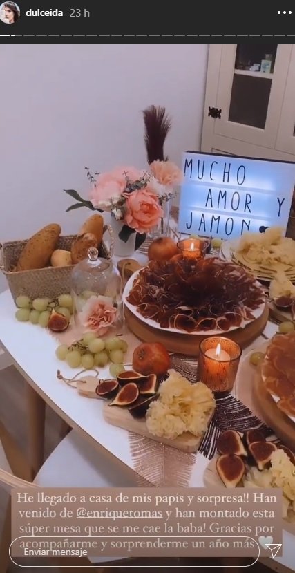 Dulceida també ha penjat en un Stories algun dels regals que va rebre en el seu aniversari. El regal de la mare no, però ella mateixa ha informat que "mi madre me regalo un joyero superbonito en forma de espejo". El que sí han pogut veure els seus fans i seguidors és l'especial i espectacular regal que li ha fet la seva estimada. La seva dona, Alba Paul, no ha dubtat en rascar-se la butxaca i regalar-li un meravellós anell, amb una pedra de color blau ben grossa, però que encara no se l'ha pogut posar: "Es superbonito, lo que no me cabe. Lo tengo que cambiar".