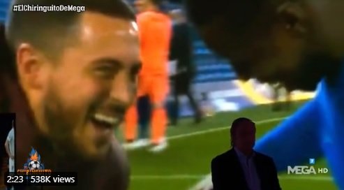 La cara d'Eden Hazard, jugador del Reial Madrid segons després de caure eliminats a les semifinals de la Champions contra el Chelsea. El jugador belga, molt trist i colpit per la derrota del seu equip, no va esperar a ser dins els vestidors, sense càmeres, per partir-se la caixa amb els seus ex companys del conjunt anglès on va jugar molts anys abans de vestir de blanc. El seu rostre és la viva representació de la indignació que pateix el madridisme. Ell simbolitza alhora, amb la seva riallada, la felicitat dels culers i la ira dels merengues, que haguessin desitjat que es tapés una mica abans de mostrar tanta eufòria en un moment de dol com era l'eliminació recent després d'un bany descomunal del Chelsea. Especialment, els d'El Chiringuito de Mega.