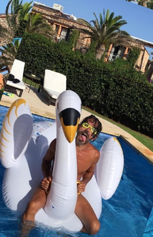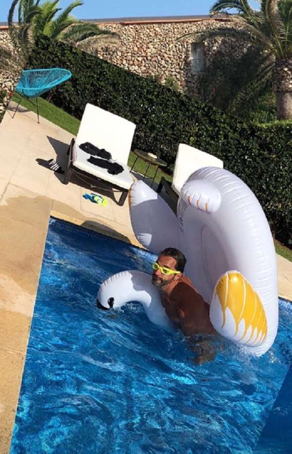 Com es nota que ja ha arribat l'estiu i els famosos ens regalen moments divertits i la seva cara més desenfadada. El presentador i actor català Santi Millán s'ha "confinat" aquest matí a una piscina particular i damunt d'un flotador gegant en forma de cigne s'ho ha passat pipa. La seva dona, la directora i realitzadora de televisió Rosa Olucha, no podia parar de riure mentre el gravava i compartia amb els seus seguidors un feliç moment en família. En el vídeo es pot veure a Millán que només portava unes ulleres de piscina. Per tota la resta? Com va arribar al món: totalment despullat.