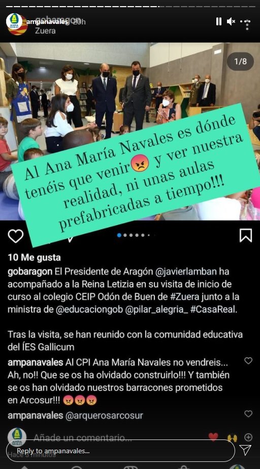 El AMPA de otra escuela aragonesa critica el acto de Letizia "A nosotros ni aulas prefabricadas a tiempo":