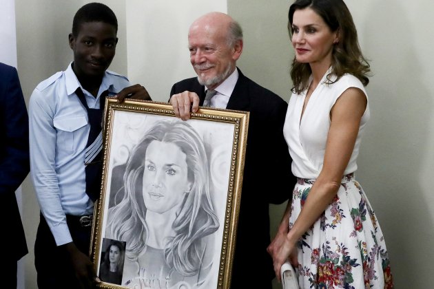 Letizia recibiendo un retrato en una visita a Haití / GTRES