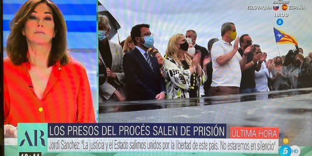 Uno de los rasgos de identidad de Telecinco son las pausas publicitarias. Son interminables, constantes, pesadas. Sí, es un canal privado y un negocio millonario, pero no sería la primera vez que abusan de ellas. Ahora bien, nada comparable a lo que ha pasado este 23 de junio de 2021. Un día histórico en el que los 9 presos políticos independentistas han podido abandonar definitivamente las cárceles donde cumplían el castigo despiadado de un estado que no conoce más herramientas que la represión. Su salida ha tenido lugar durante la emisión de 'El Programa de Ana Rosa', declarada ultraespañolista, contraria a cualquier medida de gracia con el independentismo, y evidentemente en desacuerdo con los indultos. Mientras se producía el gran momento, ¿qué hacía Quintana? Anuncios. Y más anuncios. 10 minutos o más de spots, promos, separadores, cortinillas, patrocinios... todo el repertorio para no tener que enseñar en directo la imagen de la jornada y sus parlamentos. '¿Casualidad?', que diría aquel.