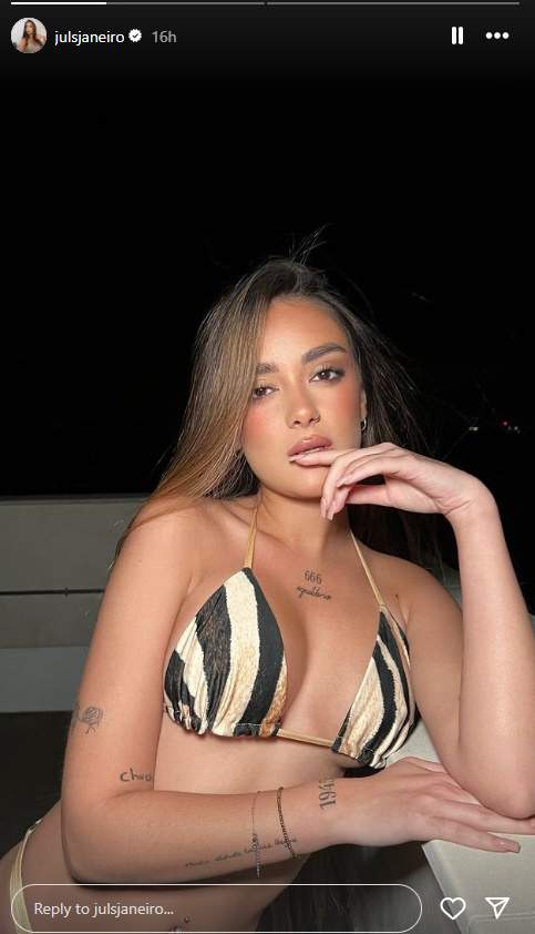 Era cuestión de tiempo que una empresa de bikinis la contratara. Ha sido una empresa gallega de ropa de baño: "No puede estar más preciosa con nuestro bikini falésia gold". Hombre, más preciosa puede estar. Era seguro que la ficharían porque el 90% de los puestos de Instagram de Julia Janeiro son en bikini o semidesnuda: