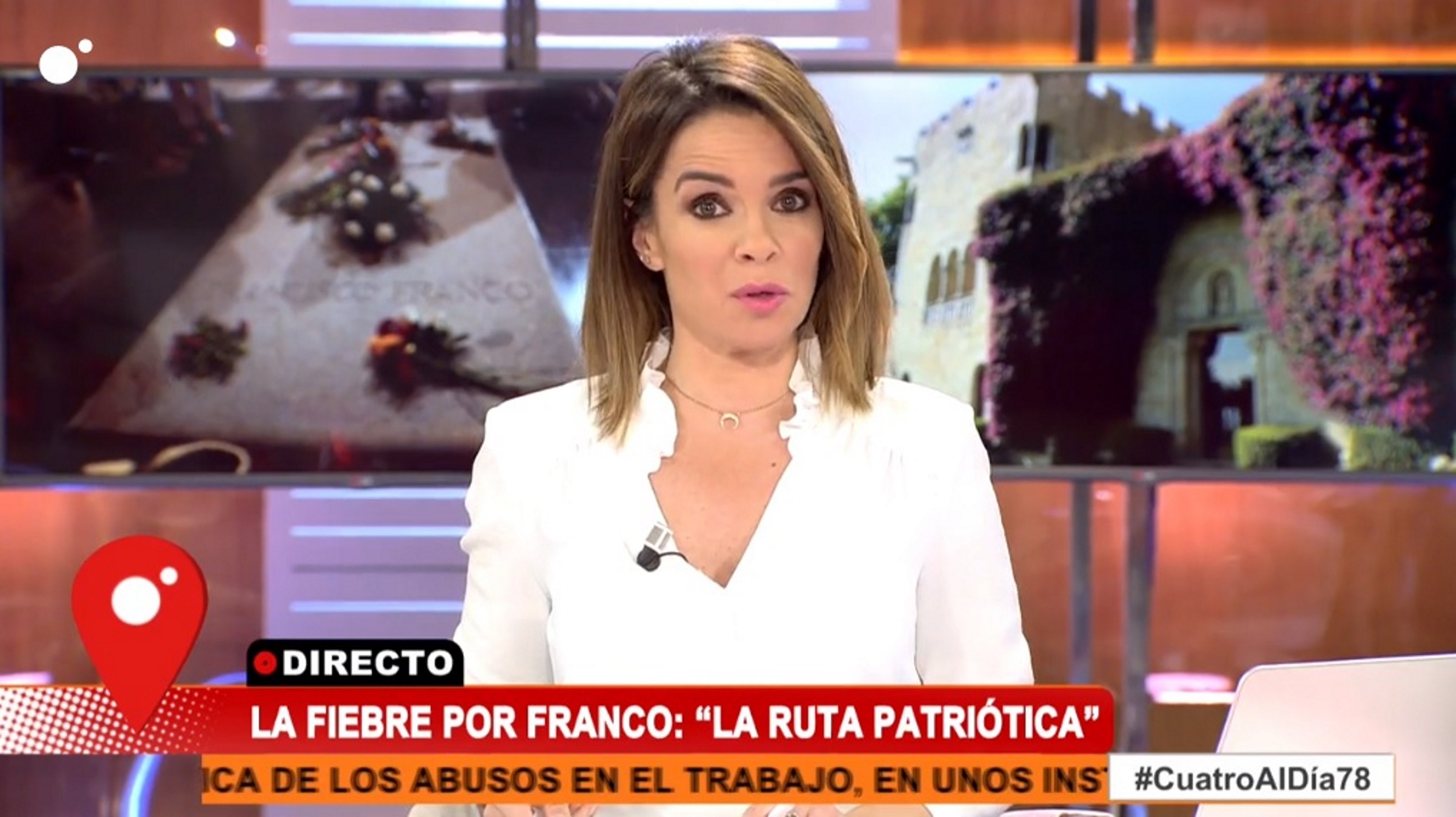 Este último fue entrevistado ayer tarde en 'Cuatro al día', el magazine que la periodista catalana Carme Chaparro presenta en el segundo canal de Mediaset. Como era de esperar, la tensión con Chen Xiangwei, "el chino más franquista", estalló desde el primer momento. El chino ultraderechista es dueño de un bar en Madrid. La simbología fascista inunda el local e indigna a los demócratas. Cristina Fallarás, sentada al lado de Chaparro mientras escucha todo lo que dice el entrevistado sobre la no-exhumación del dictador, la hace enfurecer y le atiza: “Se está usted enriqueciendo con cientos de miles de torturados, decenas y centenares de campos de concentración, asesinatos, sangre, muerte...”.