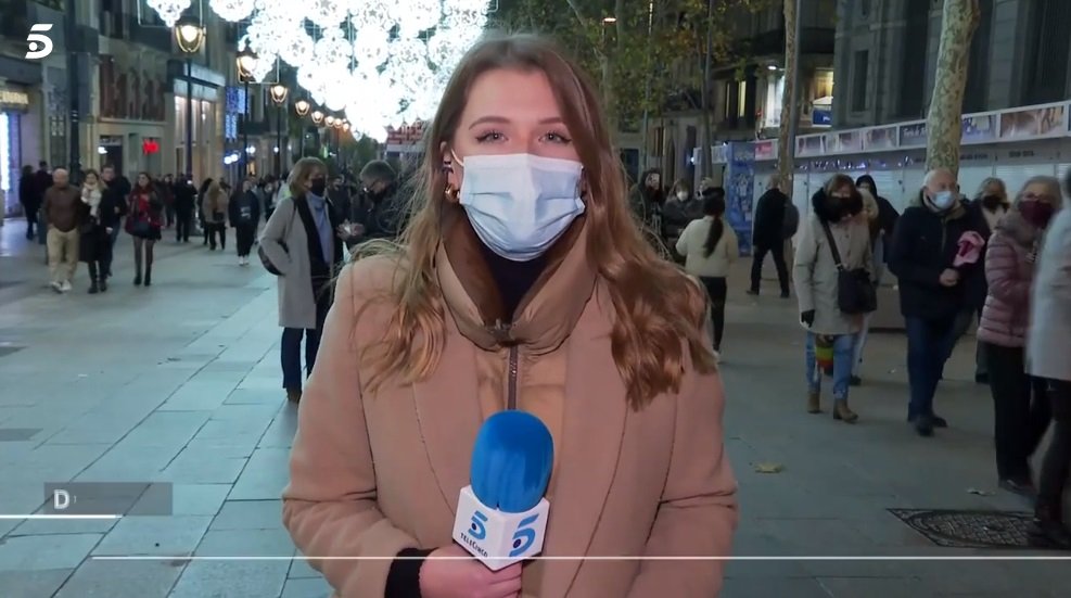 Pero los que andaban por allí iban cargados con muchas bolsas, y no sólo con bolsas. Alguno también iba con el buche lleno y con ganas de descargar. Y la reportera lo ha experimentado en su propia piel. Mientras estaba explicando que muchos han avanzado las compras navideñas, se oye de fondo una voz que le chilla a la oreja: "¡¡Mercenarios!! ¡¡Que sois unos mercenarios!! ¡¡Decid la verdad sobre la pandemia, mercenarios!! ¿¿Cuánto os pagan, mercenarios? Falsa pandemia, hijos de puta!".