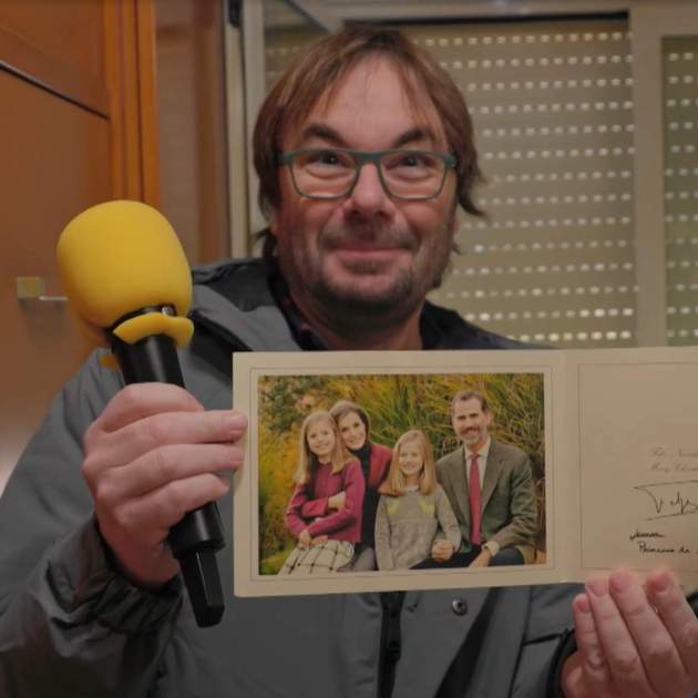 La cara de Quim, de perplejidad total. La lista, sin embargo, no termina aquí. También incluye a la monarquía española... "Al rey Felipe, cuando aún era príncipe. Primero se lo envié al rey de España, el emérito, y me respondió. Me envió una dedicatoria, Juan Carlos, donde me decía 'Muchas gracias por el detalle'. Y entonces le hice uno al príncipe cuando se casó. Y me enviaron una felicitación"... Evidentemente, Quim aprovechó la ocasión para mojar pan: "Qué señorío, sí señor. Felipe, Letizia y las princesas le envían una postal: 'Gracias David, por tus huevos'. Y el rey emérito: 'Gracias David, tú y yo en el fondo somos iguales: toda la vida tocándonos los huevos'". Sensacional. Como bien dice El Foraster, David no les podría haber hecho un mejor regalo a los Borbones, especialistas en tocarse los huevos.