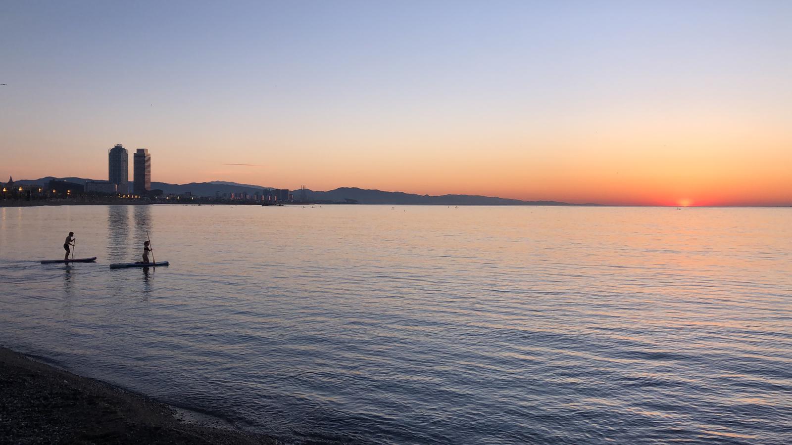 La Barceloneta a las 6 de la mañana está llena a reventar. Hay gente bañándose y haciendo paddle surf con la salida del sol. ¿Confinamiento? Ni pensamiento. La red se llena de vídeos de barceloneses haciendo deporte en el Paseo Marítimo, especialmente cerca del Hotel W. Esta foto y el time lapse son de este miércoles 20 de mayo: