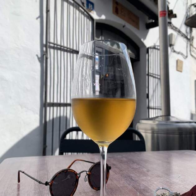 Haciendo país tomando un vino blanco hecho con con ����propis como el xarel•lo y la malvasía de Sitges.