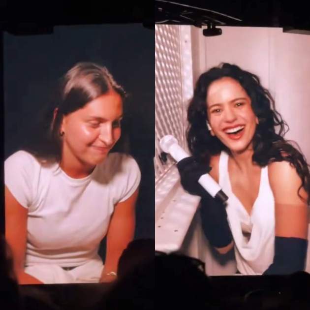 Kika Nazareth le preguntaba, en catalán a Rosalía: "¿Cómo quieres hacer esto? ¿En catalán?", la artista, sorprendida y encantada, respondía: "Como a ti te vaya bien". Finalmente, la jugadora eligió hacerlo en castellano, seguramente para poder expresarse mejor y explicar el siguiente triángulo amoroso: "Yo hace mucho conocí a una tía, una chica, con quien me llevé muy bien desde el principio", comenzaba explicando la futbolista. Rosalía, con ganas de saber más, le preguntaba curiosa: "Y había feeling, ¿no?", Kika lo concretaba de forma sutil: "No, bueno, esas amistades intensas que no sabes qué pasa.... Espérate". Rosalía quería saberlo todo, pero Kika estaba impaciente y aún no quería dar detalles: "Ella, impaciente, perdóname Kika, perdóname", le decía la cantante haciendo humor de la situación. Es entonces cuando Kika Nazareth empieza a revelar el nudo de la historia: "Y se la presenté a mis amigas, y les cayó genial, o sea, muy guay todo. En mi cumple, hace muchos años, la invité, estaba con mis amigas y ella se llevó demasiado bien con una amiga mía. Total, que empezaron a hablar; yo sabía algo, pero no sabía por qué no me lo dijo. Yo lo notaba, pero no me lo dijo. Creo que se lo pregunté, me dijo que no, total que estaban hablando, pero cuando me enteré de que estaban juntas, porque estaban juntas...O sea, ligando, quedando, lo que pasa es que ella seguía hablando conmigo y seguía tonteando", un triángulo amoroso que prometía y mucho.