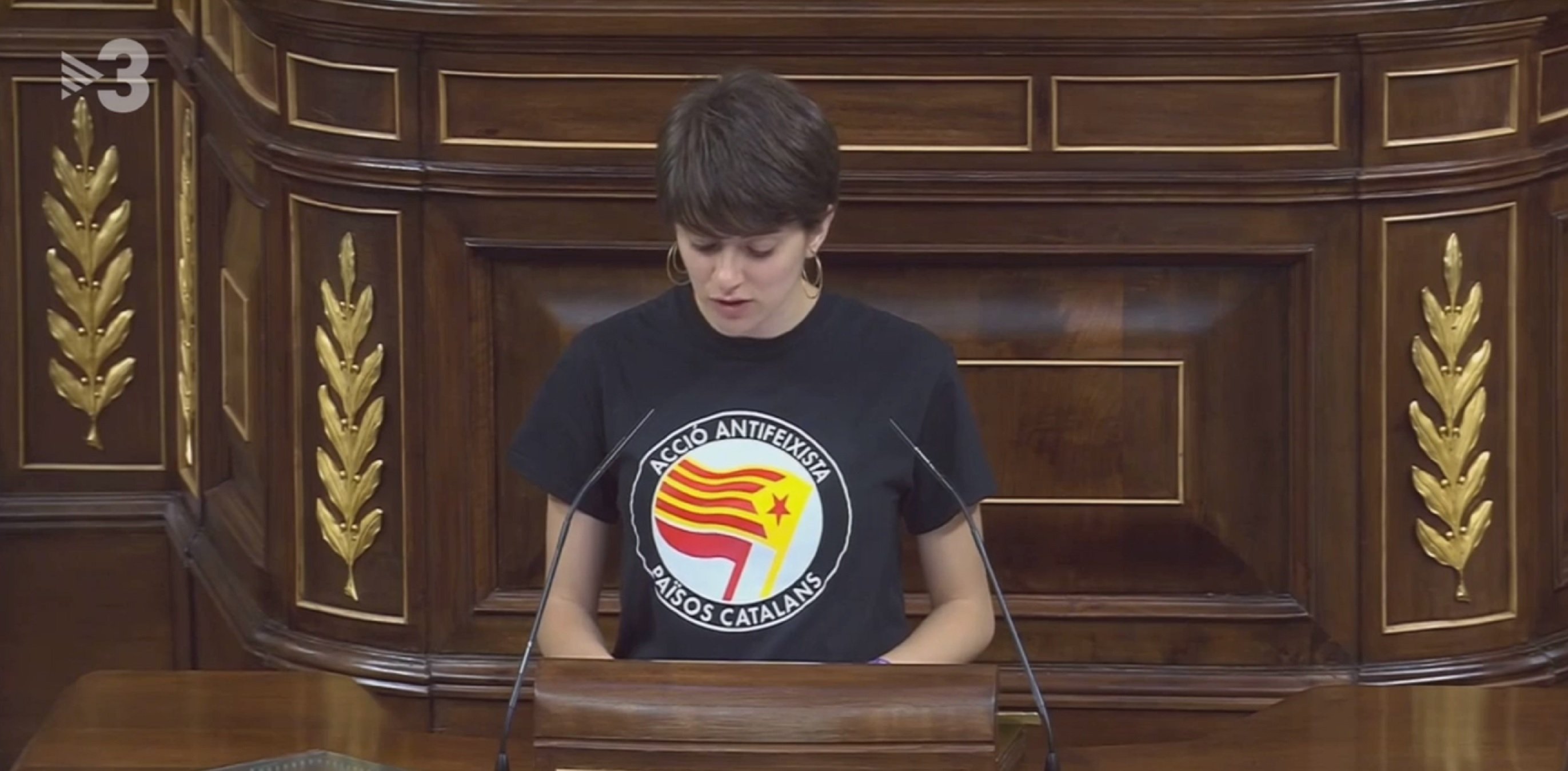 Fascistas ofendidos por una camiseta antifascista. En TV3 una tertuliana, Marta Roqueta, cuestionaba la legitimidad de tener diputadas como esta, de 23 años: "Con los diputados jóvenes tengo una contradicción, no sé qué puede aportar una persona tan joven. Para hacer un ejercicio parlamentario hay que tener una experiencia profesional o una visión más amplia del mundo. La activista sueca Greta Thunberg (16 años) también dice tonterías". Tot es mou no echa en falta a Jordi Cañas.