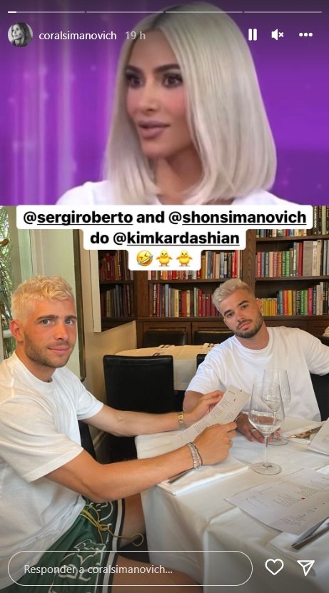 Quedaba por saber cómo ha reaccionado su pareja. Y Coral Simanovich, sensacional, ha publicado una foto haciendo cachondeo sobre Sergi Roberto, sobre el cuñado del jugador, y hermano de ella y sobre el color de pelo similar a toda una influencer como Kim Kardashian: