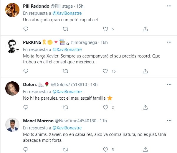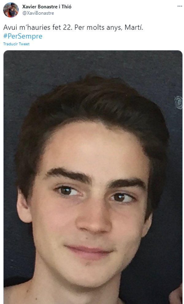 Martí sufrió un grave accidente de motocicleta y también salió de ello, aunque le tuvieron que colocar una prótesis en la aorta. Tenía la fuerza y la energía para seguir viviendo, disfrutando y haciendo disfrutar a los que tenía a su alrededor. Por ejemplo, a Xavier, su mujer y su hijo Biel. Explica en su blog cómo fue el verano que pasaron juntos de vacaciones en un camping durante su recuperación. Se habían prometido repetirlo el próximo año, pero no pudo ser. Una trombosis se lo llevó antes de tiempo, dejando helados a todos: "en un abrir y cerrar de ojos había pasado de jugar a fútbol, lleno de vida, de pensar en el futuro a morir por culpa de una trombosis". Eso pasó el jueves 15 de septiembre del 2016, y no ha habido un solo día que no lo haya recordado y añorado. Muestras de ello hay muchas, pero la de este 4 de abril de 2021 es especialmente desgarradora: es su cumpleaños. "Habrías cumplido 22. Por muchos años, Martí. Para siempre". La red, conmovida, le da su calor.
