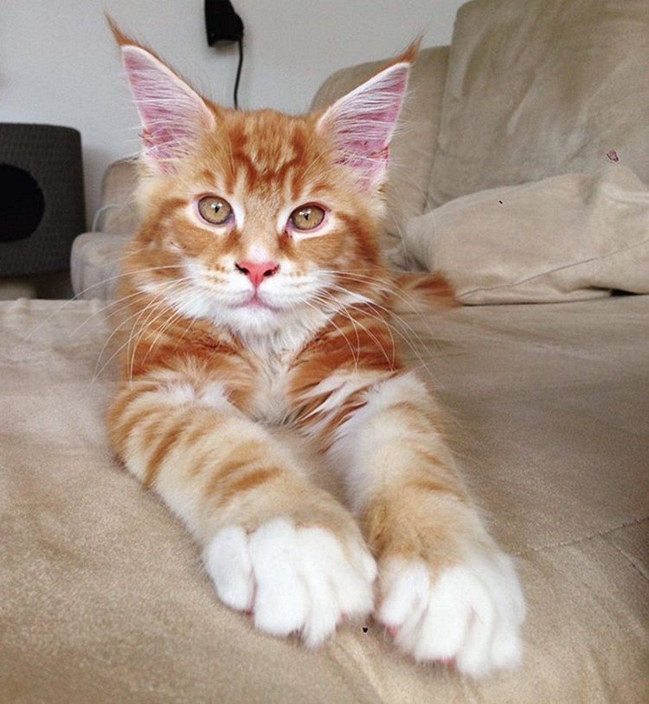 ¿Un gato...o un tigre? El tamaño de Omar es todavía más evidente cuando lo vemos al lado de alguien.